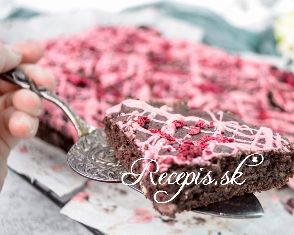 - Po vychladnutí brownies ozdobíme podľa chuti. Ja som použila prifarbenú bielu (vegan) čokoládu a na drobno pokrájané kusy dehydratovanej cvikli.