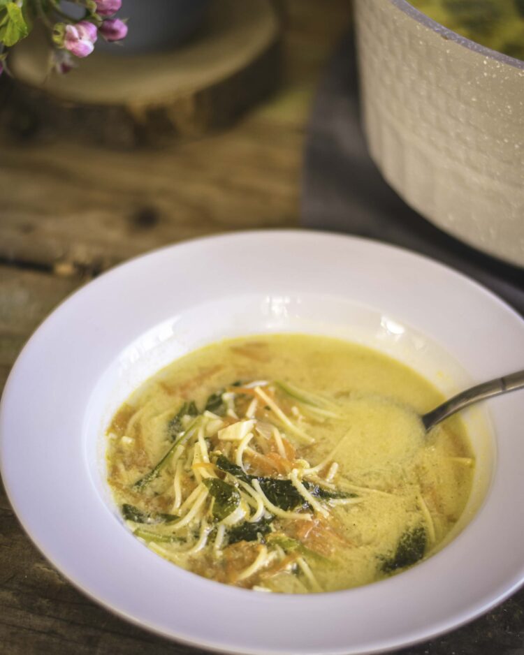 Rýchla špenátová polievka s niťovkami a jogurtom